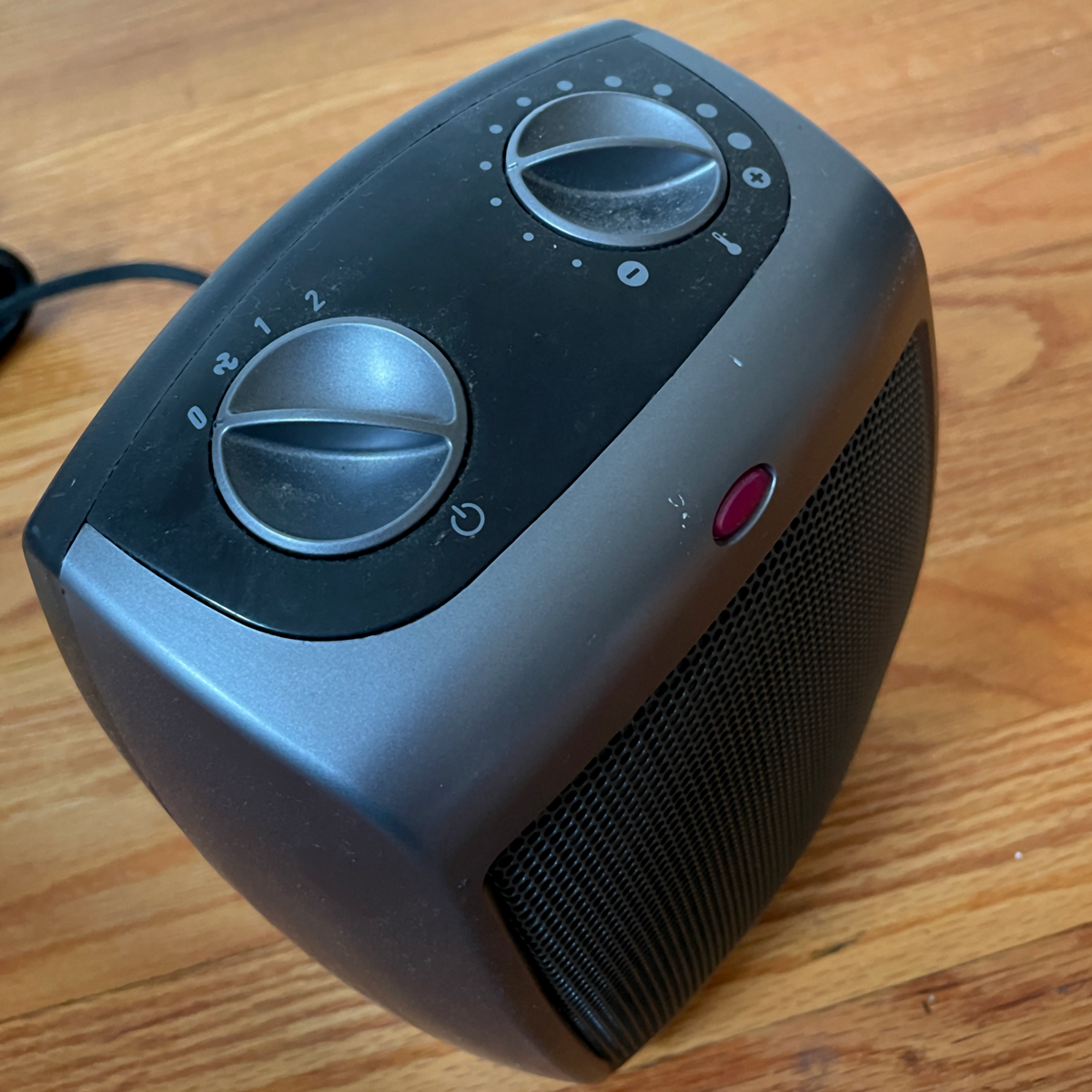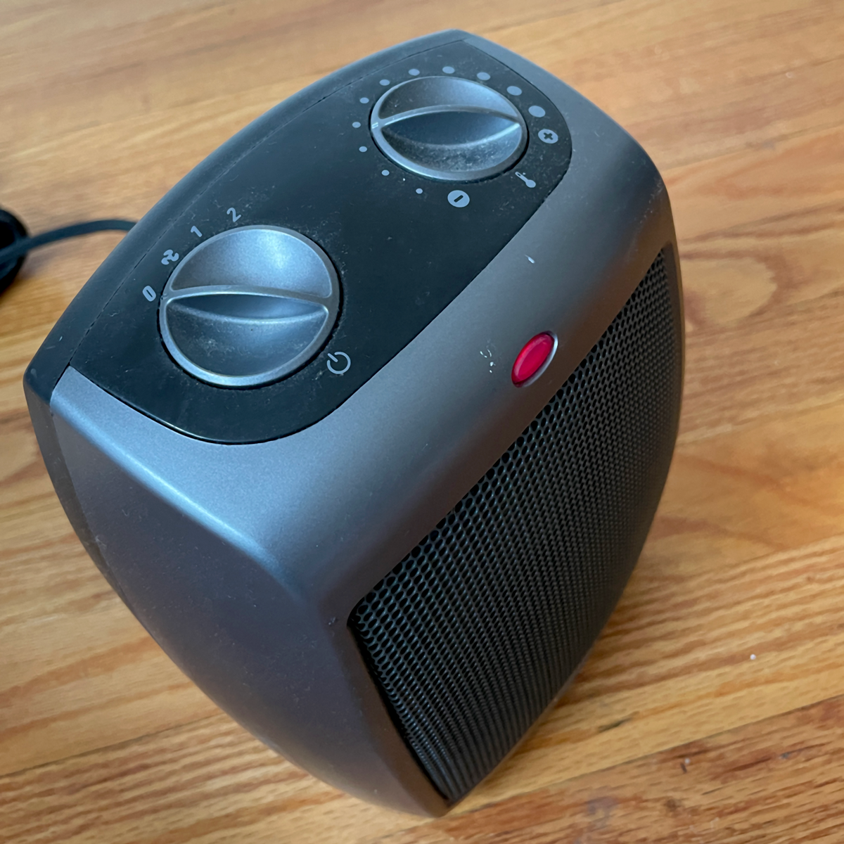 Originally purchased in 2022, this dark gray heater is lightweight, cool to the touch, and ready to make your workspace just a little less arctic.