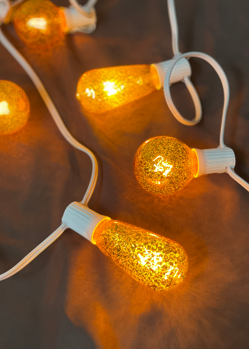 This 10-foot strand of white string lights brings a cozy, vintage glow to any space. With alternating Mercury-Gold globe and Edison bulbs, this indoor/outdoor-ready set is as charming on a patio as it is inside an office or studio.